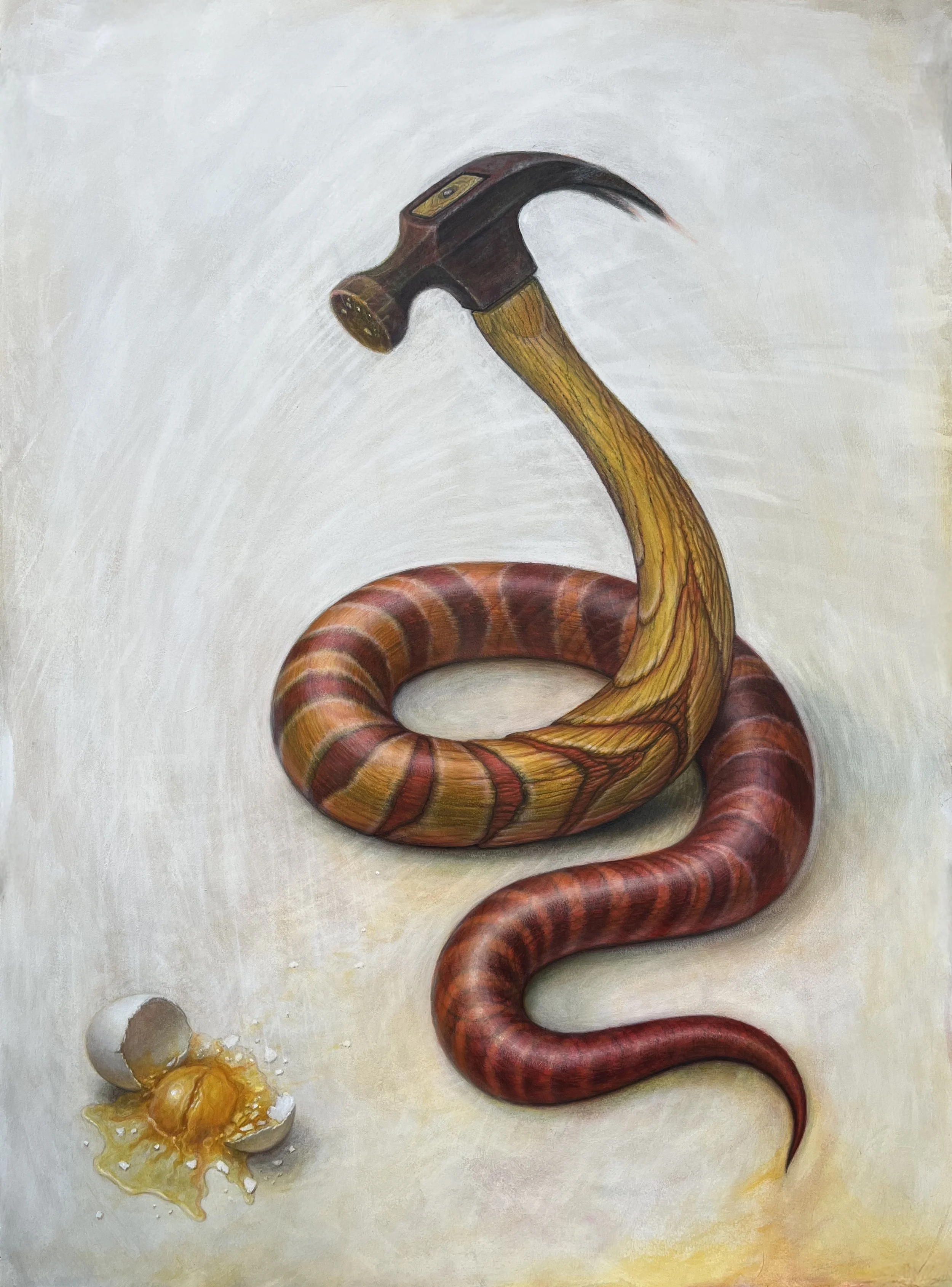 In The North American Political Animal, the Snakehammer sits poised above a broken egg. The egg is potential: ideas, families, communities, a future not yet formed. The image is not meant as a partisan accusation. It is a confession of unease; about what happens when strength is no longer guided by compassion, when conviction hardens into aggression, when the will to protect becomes the impulse to destroy. I recognize that drift in myself, and that recognition is frightening.